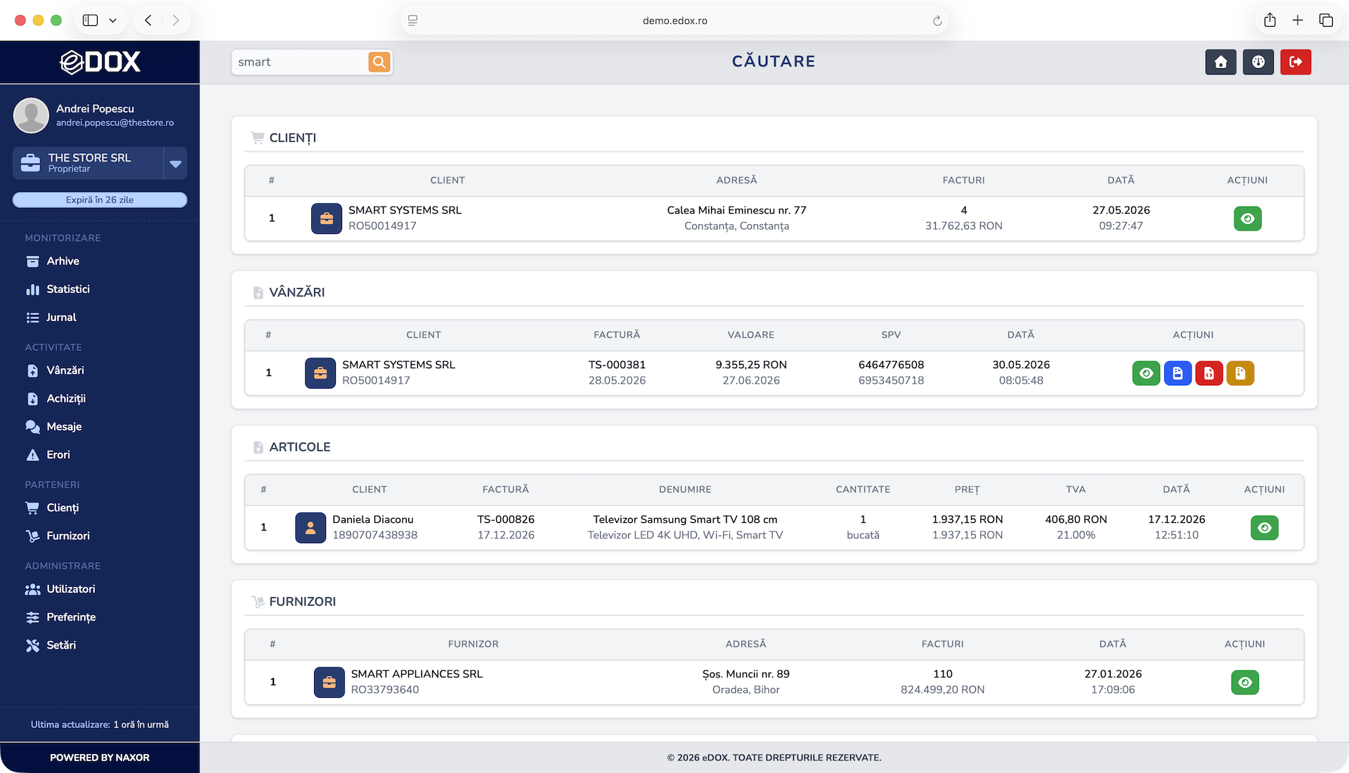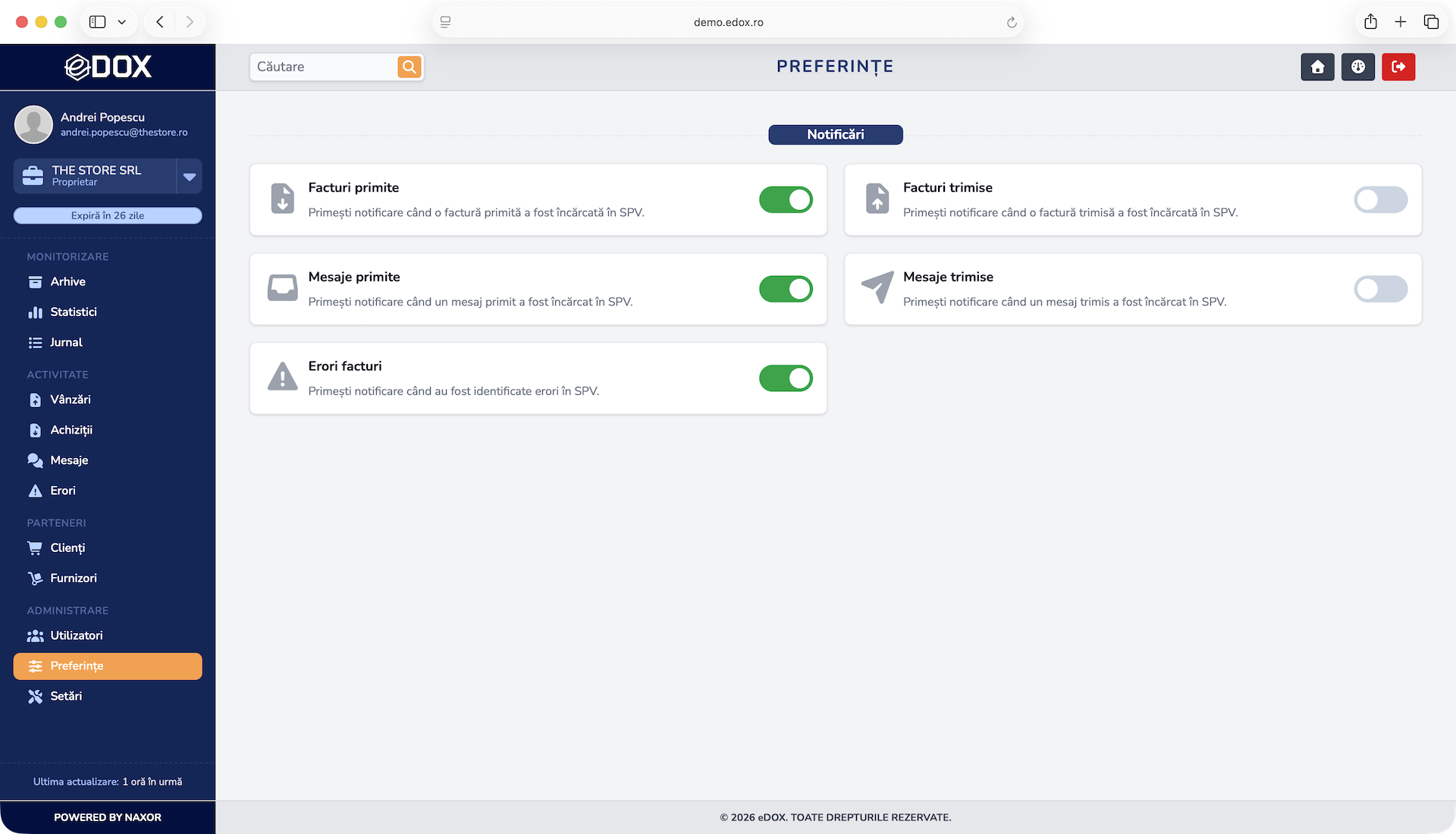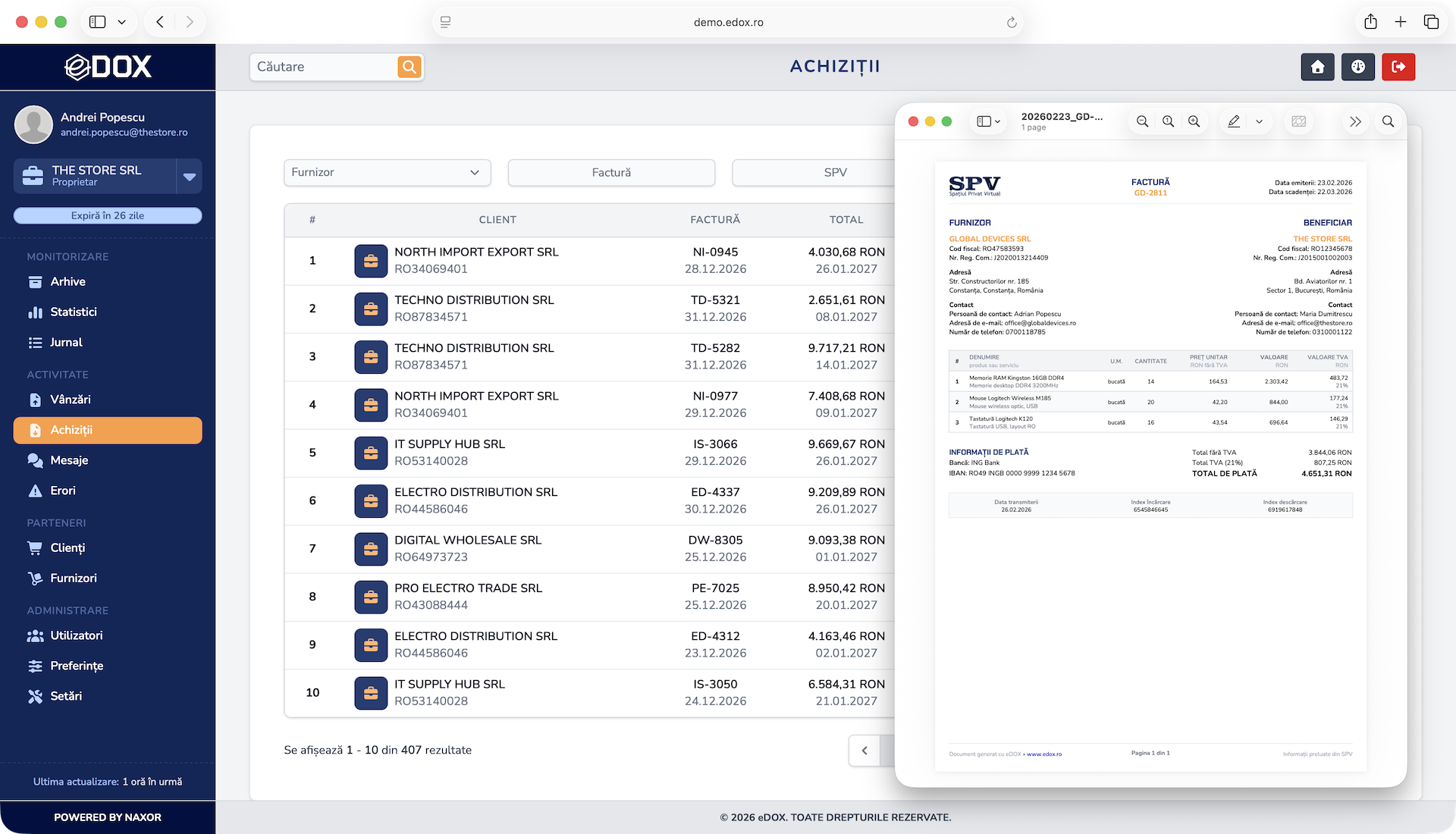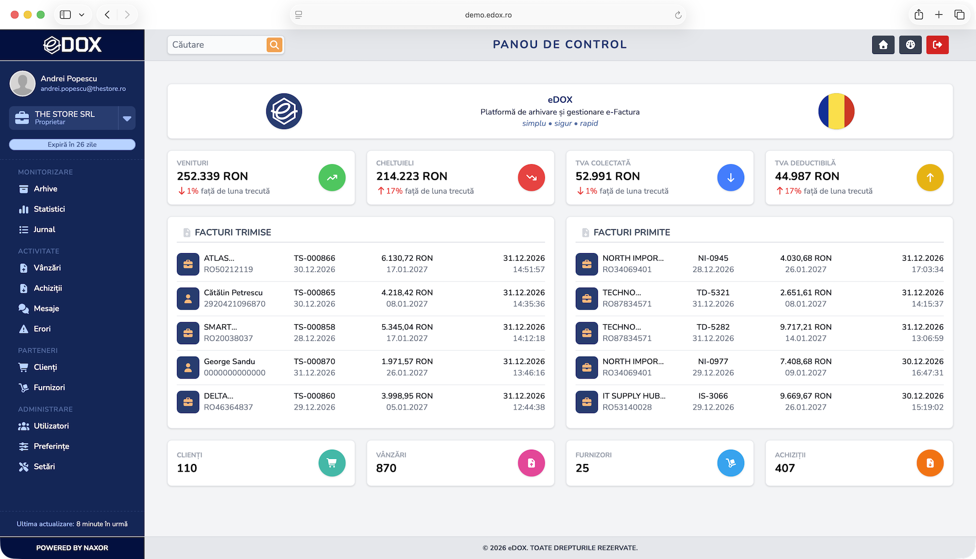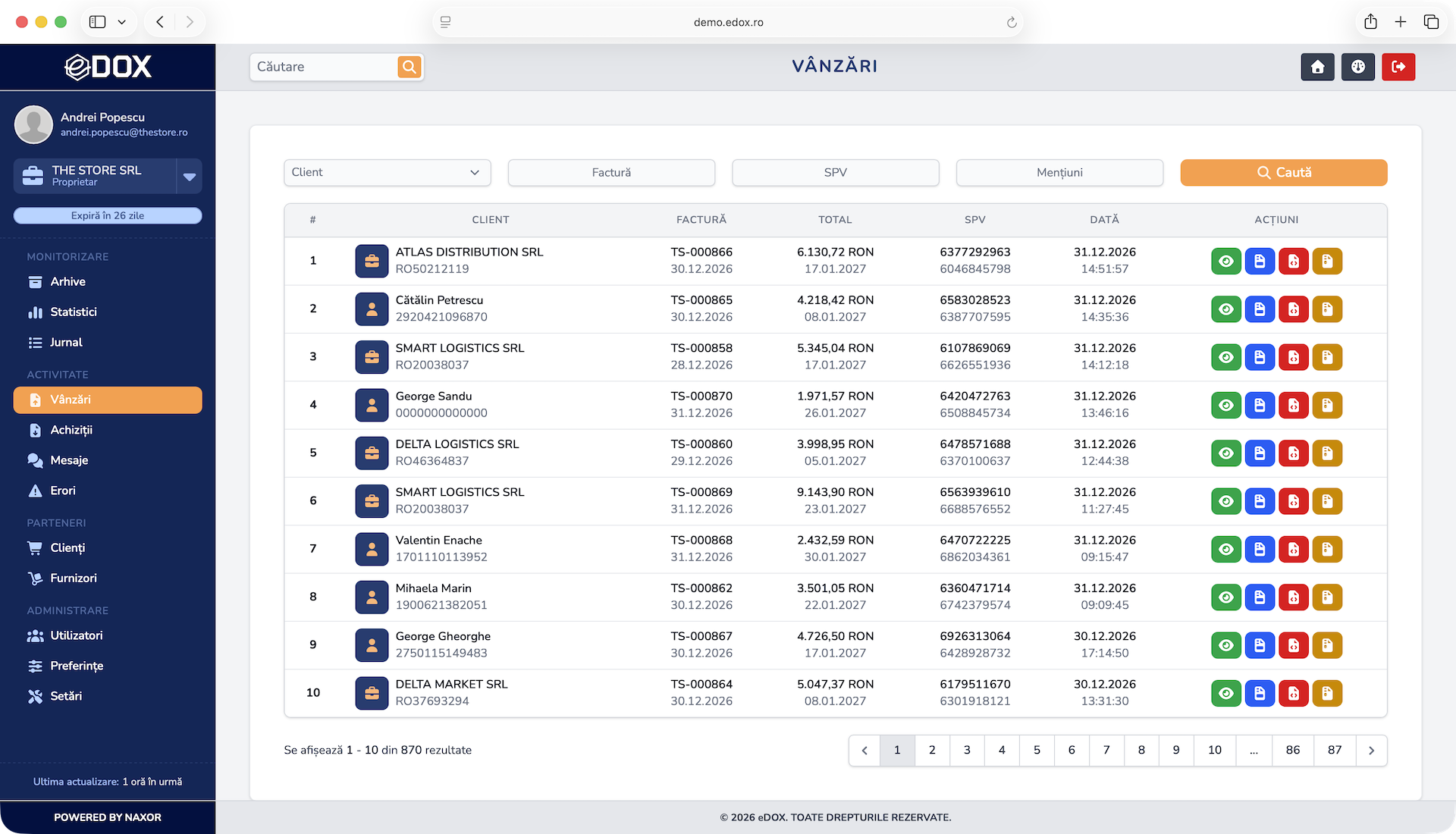 Descarcă instant facturile direct din platformă, gata de arhivare, partajare sau procesare fără pași suplimentari.