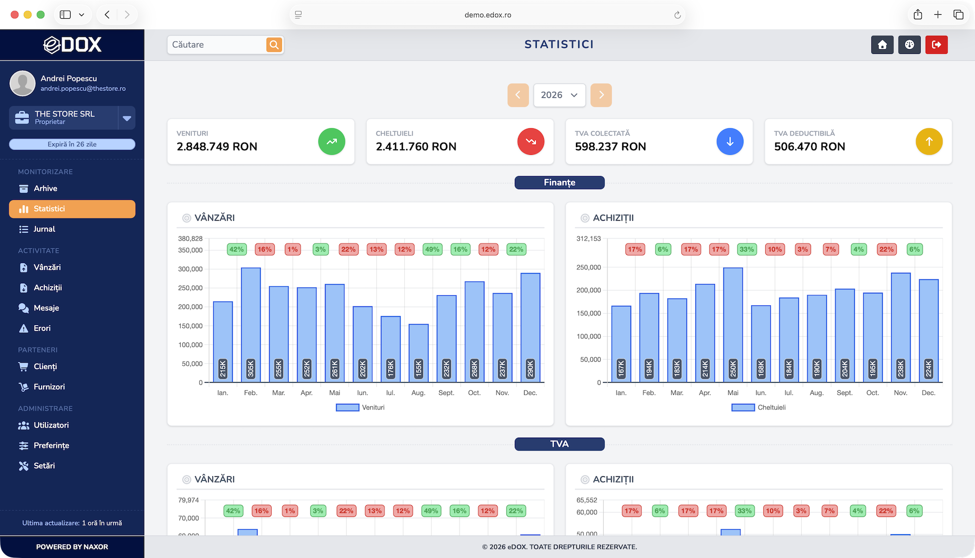 Vizualizezi rapid indicatorii financiari și evoluția activității, pentru o imagine clară și decizii mai eficiente.