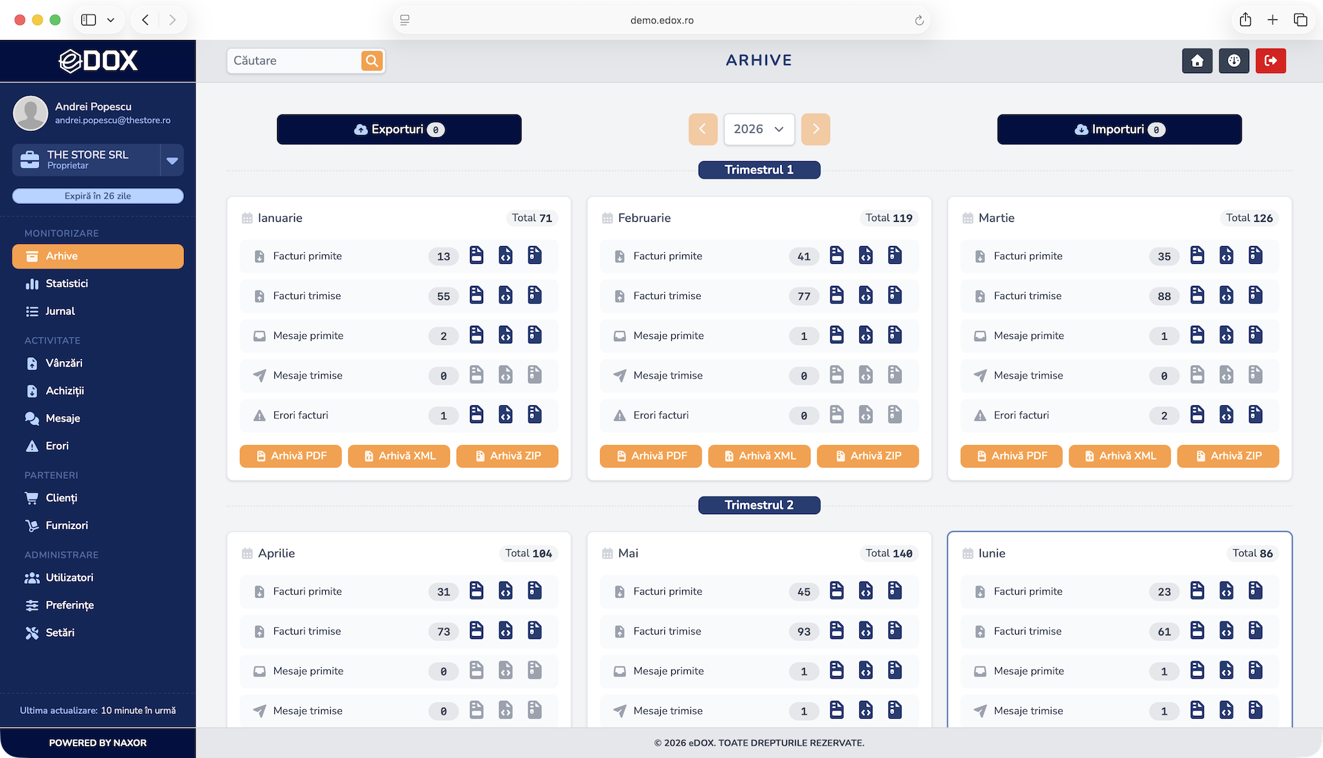 Accesezi și descarci rapid arhiva documentelor, organizată pe luni, pentru o gestionare eficientă și sigură.