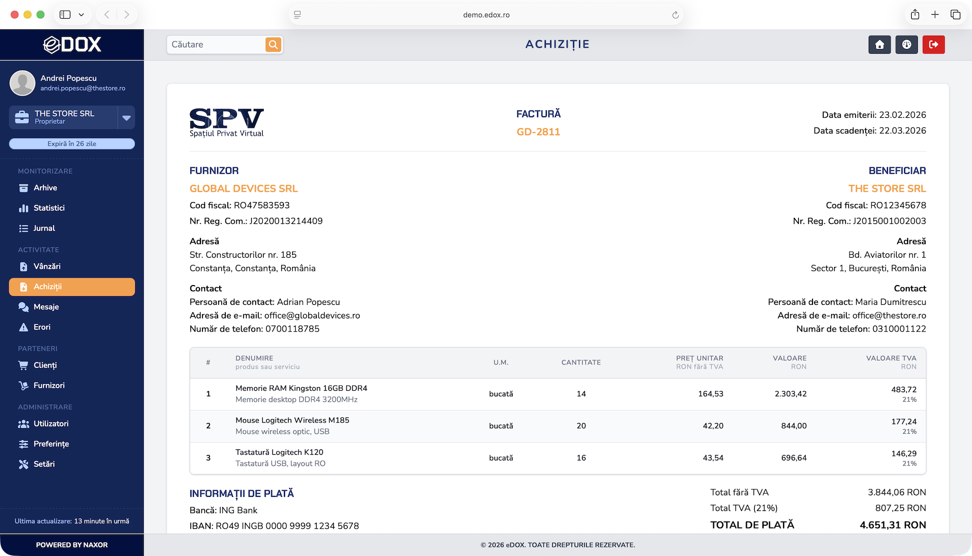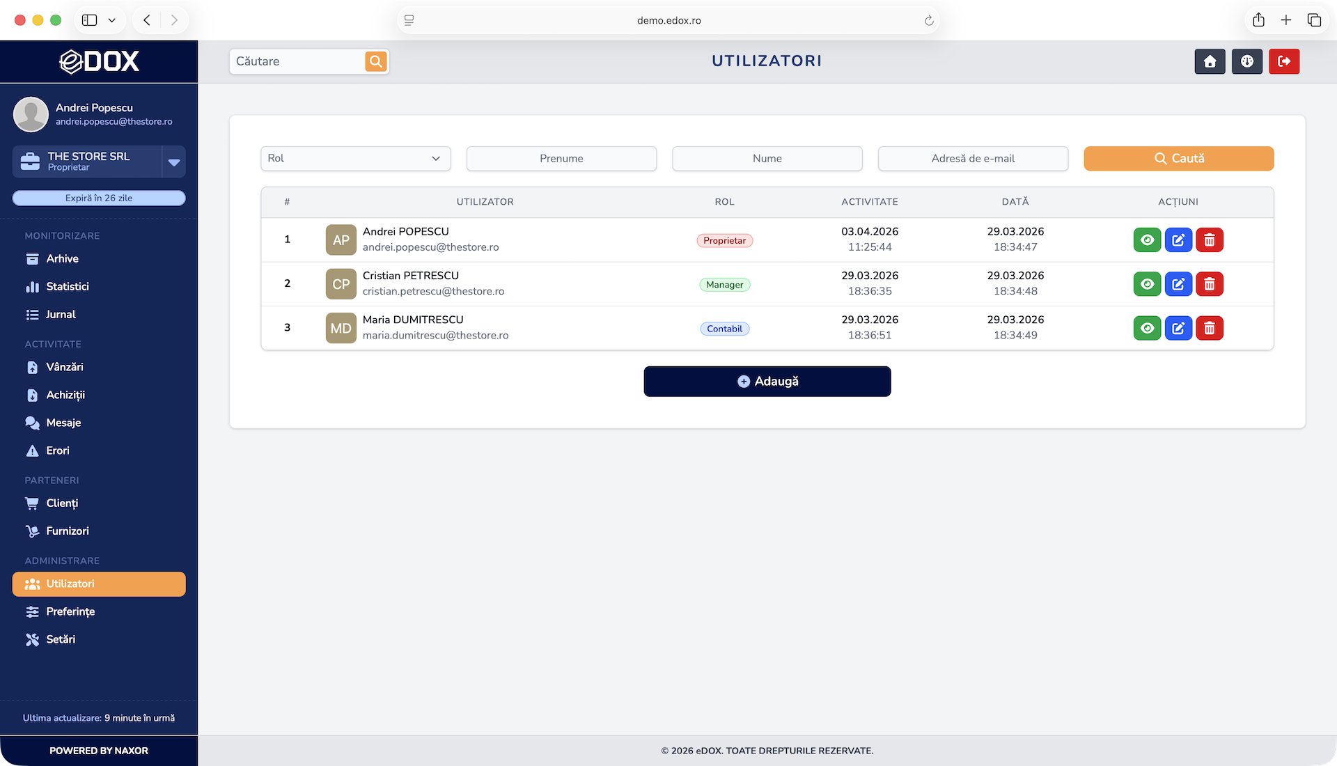 Permite adăugarea mai multor utilizatori cu acces diferit, facilitând colaborarea echipei și controlul complet al facturilor.